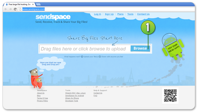 1. เข้าเว็บไซต์ www.sendspace.com จากนั้นกดปุ่ม Browse