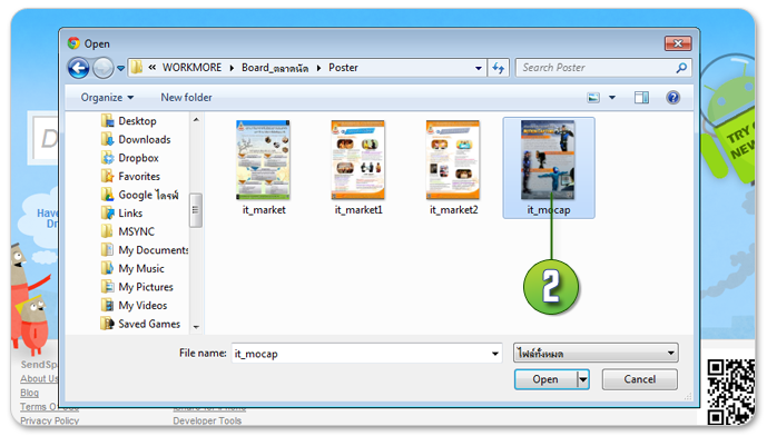 2. เลือกไฟล์งานของคุณจากเครื่องคอมพิวเตอร์ (ไม่เกิน 300 MB) แล้วกด Open