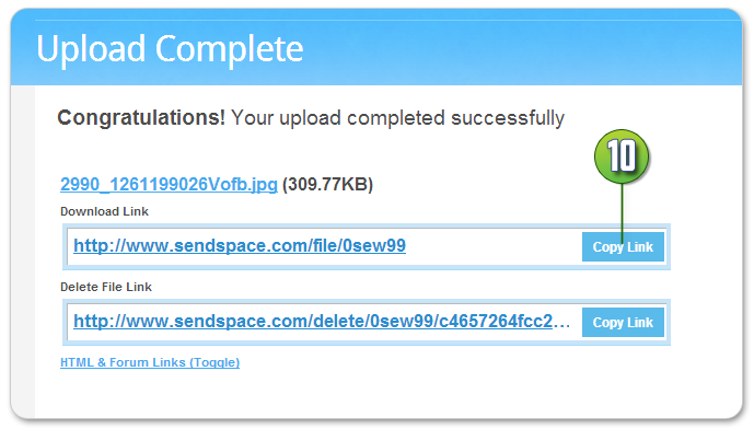 10. เมื่อครบ 100% ระบบจะขึ้นข้อความ Upload Complete ให้คุณกด Copy Link จากนั้นให้ส่ง Link ดังกล่าวเพื่อแจ้งมายังโรงพิมพ์ว่าได้อัพโหลดงานเรียบร้อยแล้ว โดยส่งอีเมล์แจ้งที่ LS_PRINTING@YAHOO.COM หรือ LERTSIL_PHUNG@HOTMAIL.COM